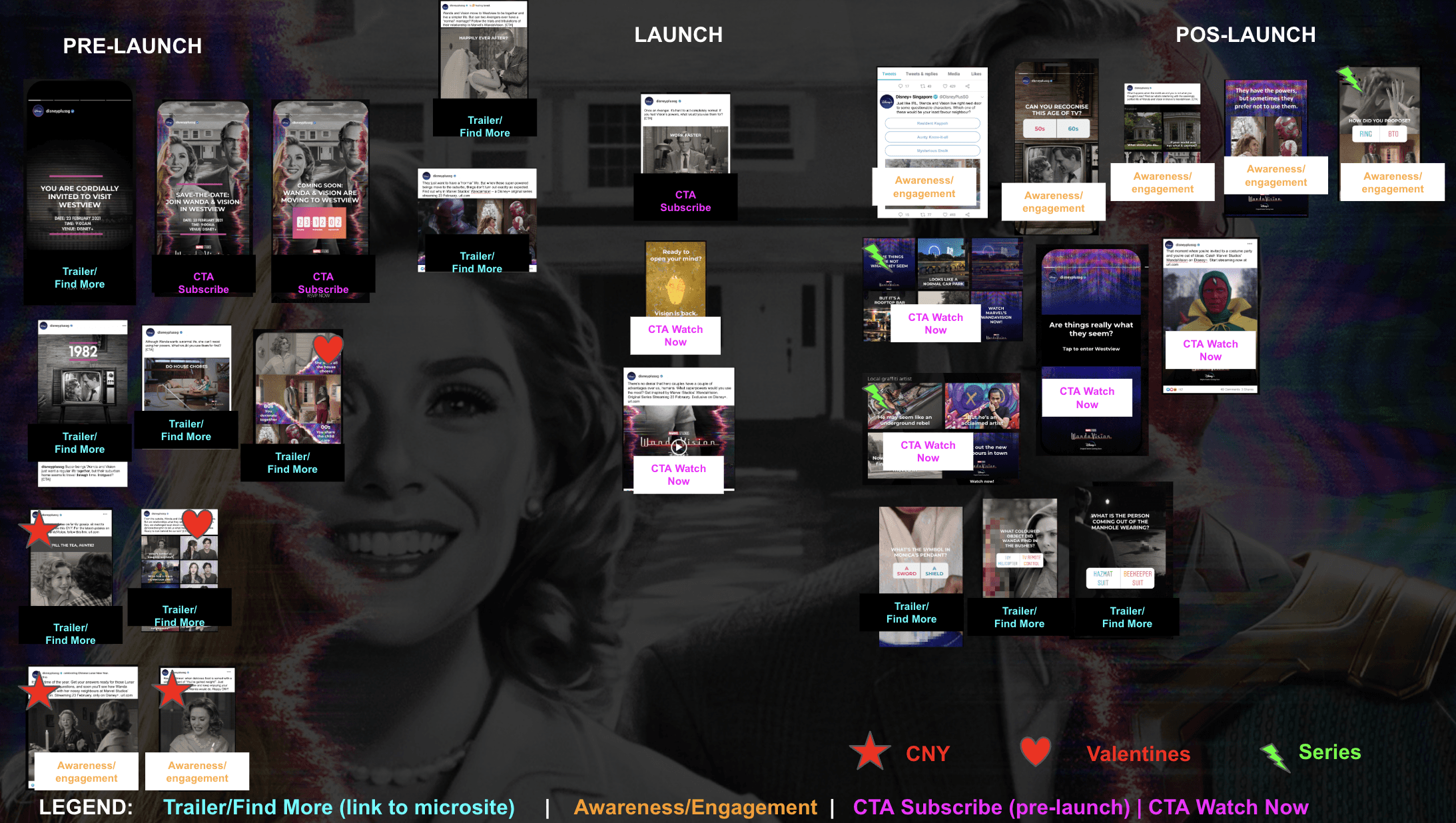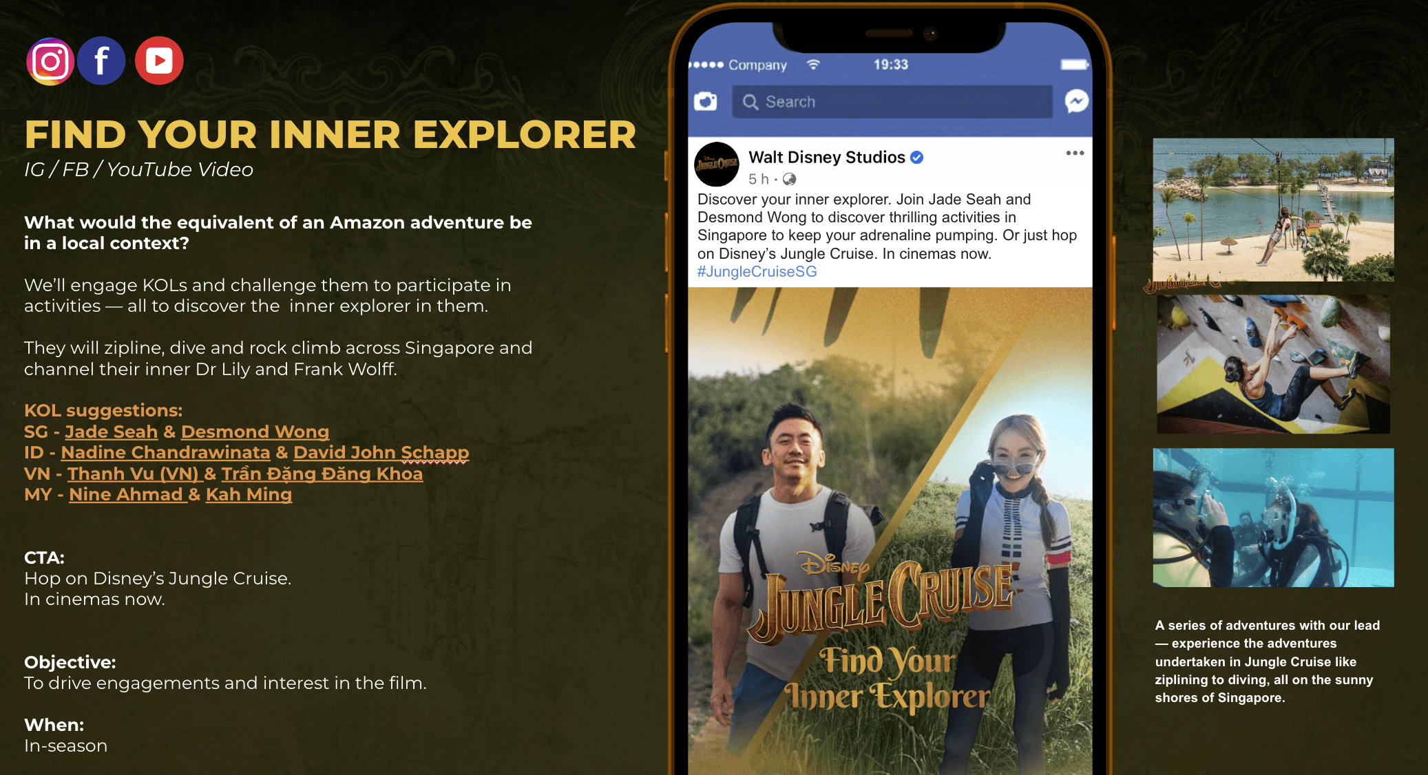 Working closely with Disney’s regional marketing and creative teams, I was part of the team that designed comprehensive creative ecosystems that unified campaign expressions across markets. These toolkits served as the core creative platforms for titles such as Disney's Onward, Disney's Jungle Cruise, Marvel’s WandaVision, Black Widow, Raya and the Last Dragon, Cruella, and Pixar’s Monsters at Work. Each toolkit provided a modular framework encompassing social media content, motion graphics, on-ground activations, and interactive experiences, empowering local markets to execute campaigns that were both globally aligned and locally authentic.